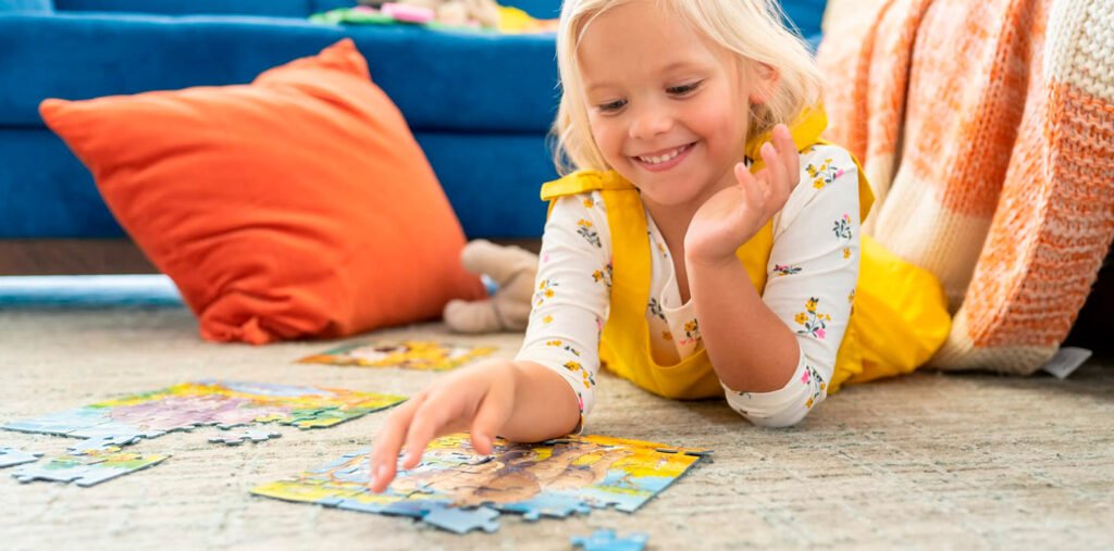 Пазлы для маленьких дітей зазвичай мають великі деталі та яскраві кольори. Завдяки цьому дитині легше зрозуміти, як працює гра. Крім того, такі пазлы часто містять зображення тварин, фруктів або казкових героїв, тому навчання стає цікавим.